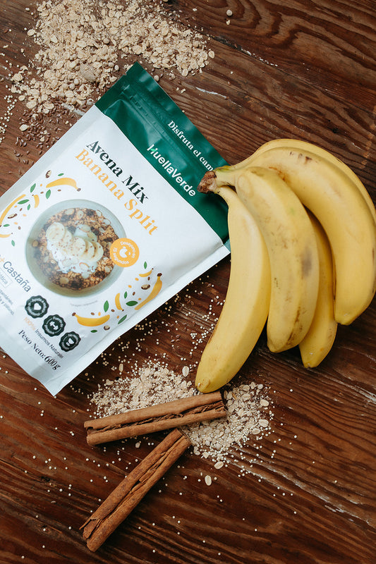 Libre de gluten Sin preservantes Libre de azúcarAvena Mix Banana Split 600gr